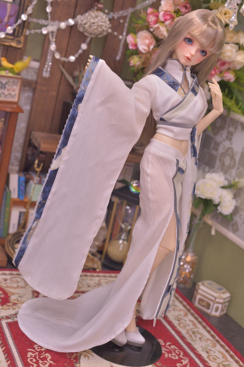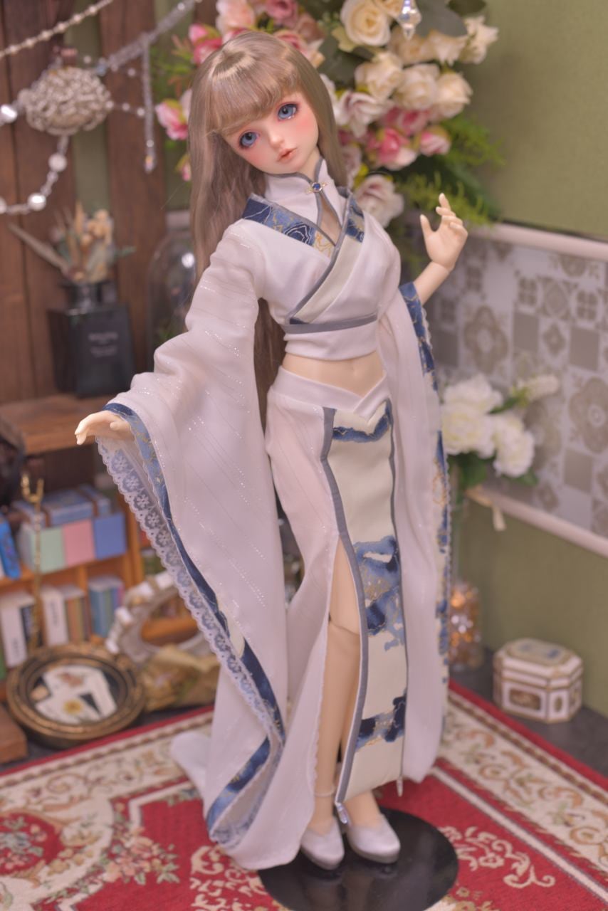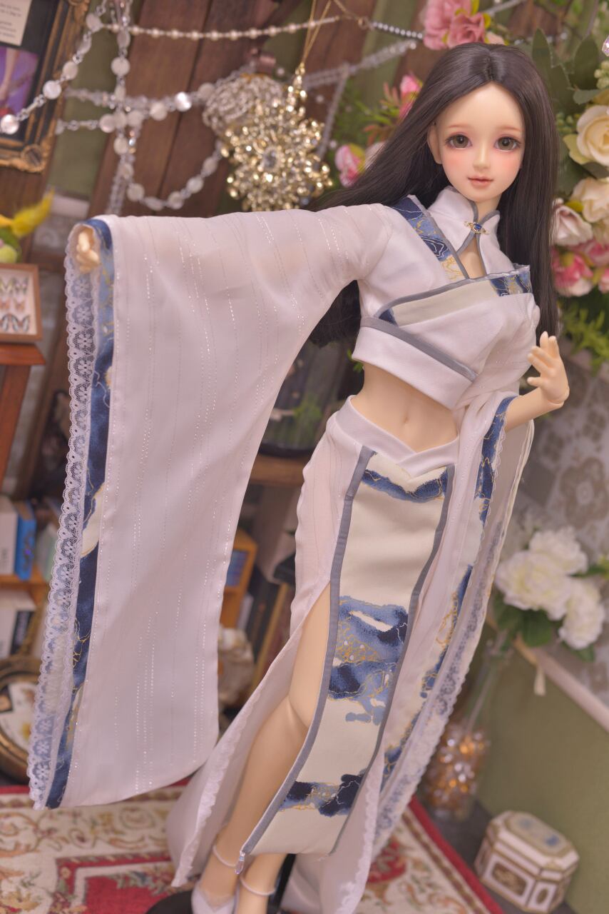 様々なドールサイズで袖丈やスカート丈にとらわれない自由なフィット感で着用できるようにパターンやデザインを工夫して製作した衣装です。