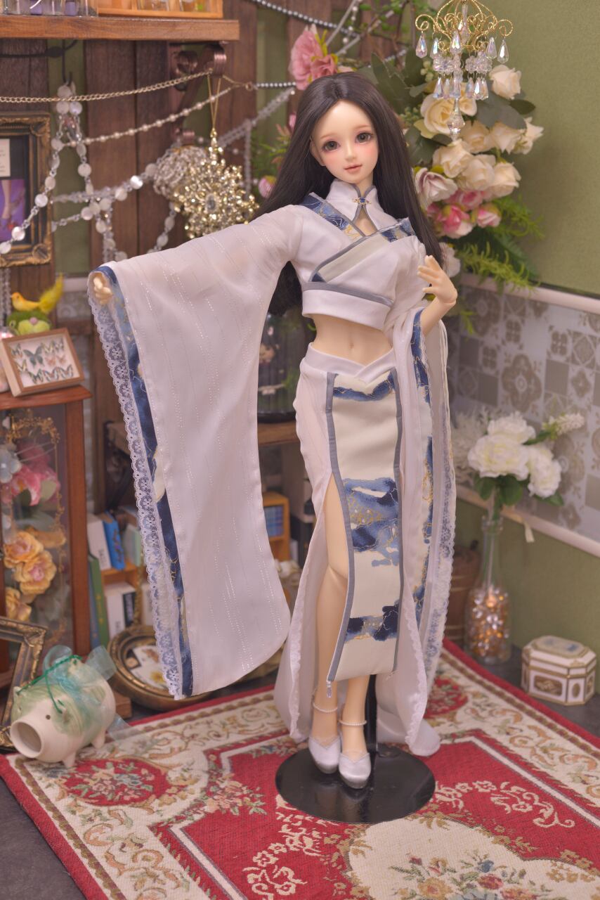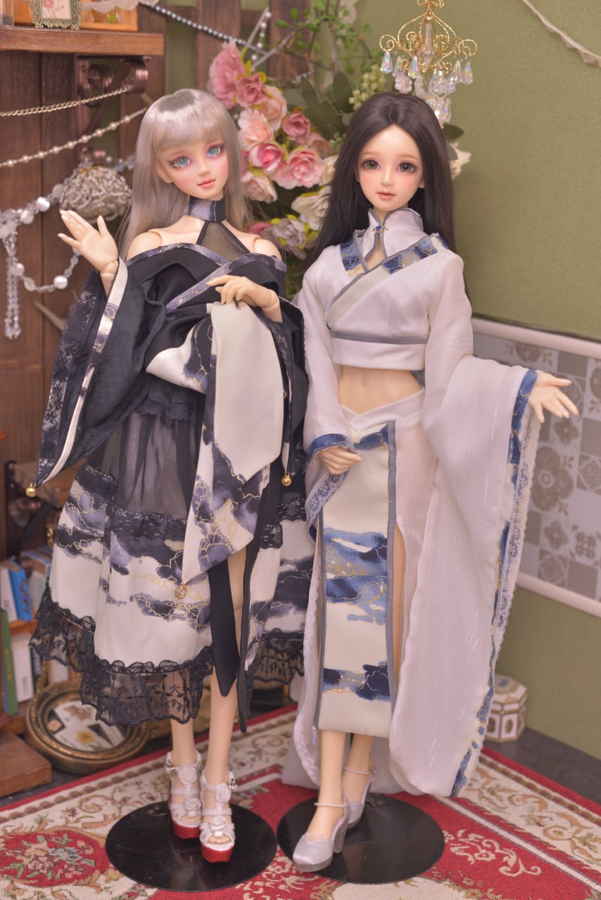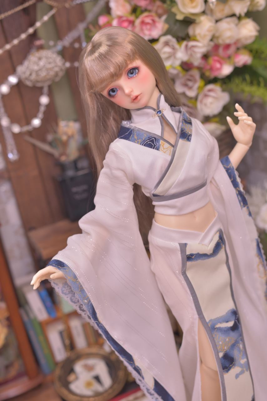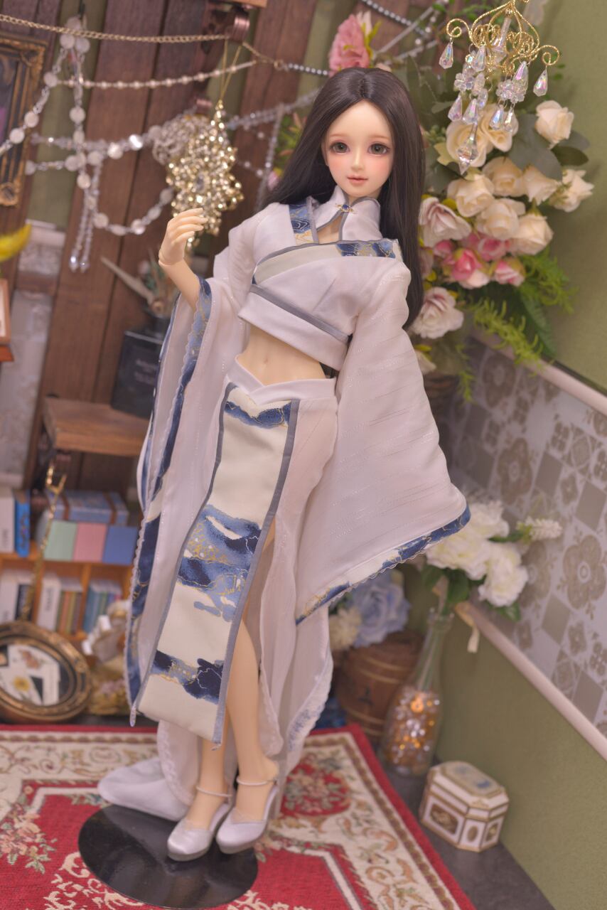 様々なドールサイズで袖丈やスカート丈にとらわれない自由なフィット感で着用できるようにパターンやデザインを工夫して製作した衣装です。