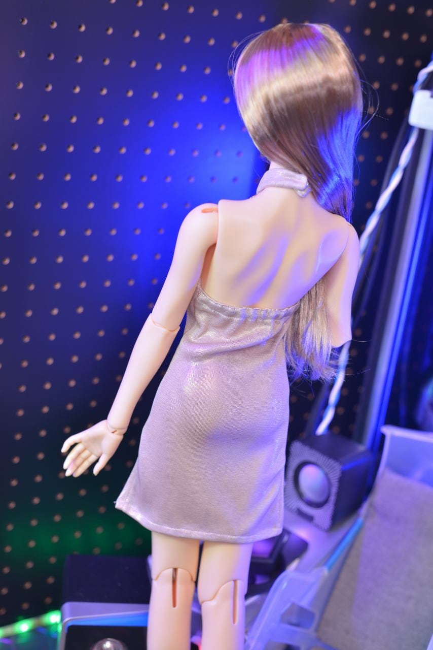 デコルテ部分には、金メッキのチェーンが施されており、