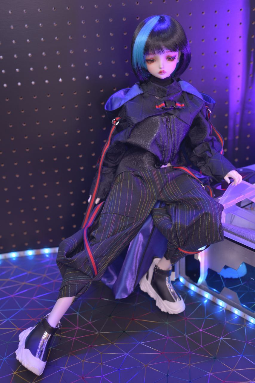 丈感は着用を確認したほぼ全てのドールで七、八分丈で設計していますのでシューズはロングブーツやハイカットスニーカー、サンダルなど様々な足元の表情の変化を楽しめると思います。