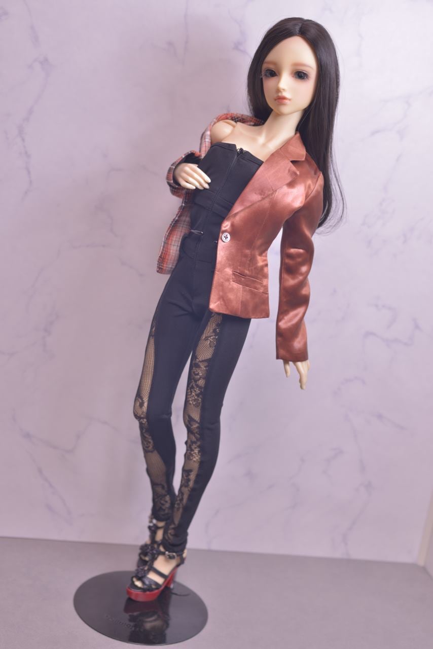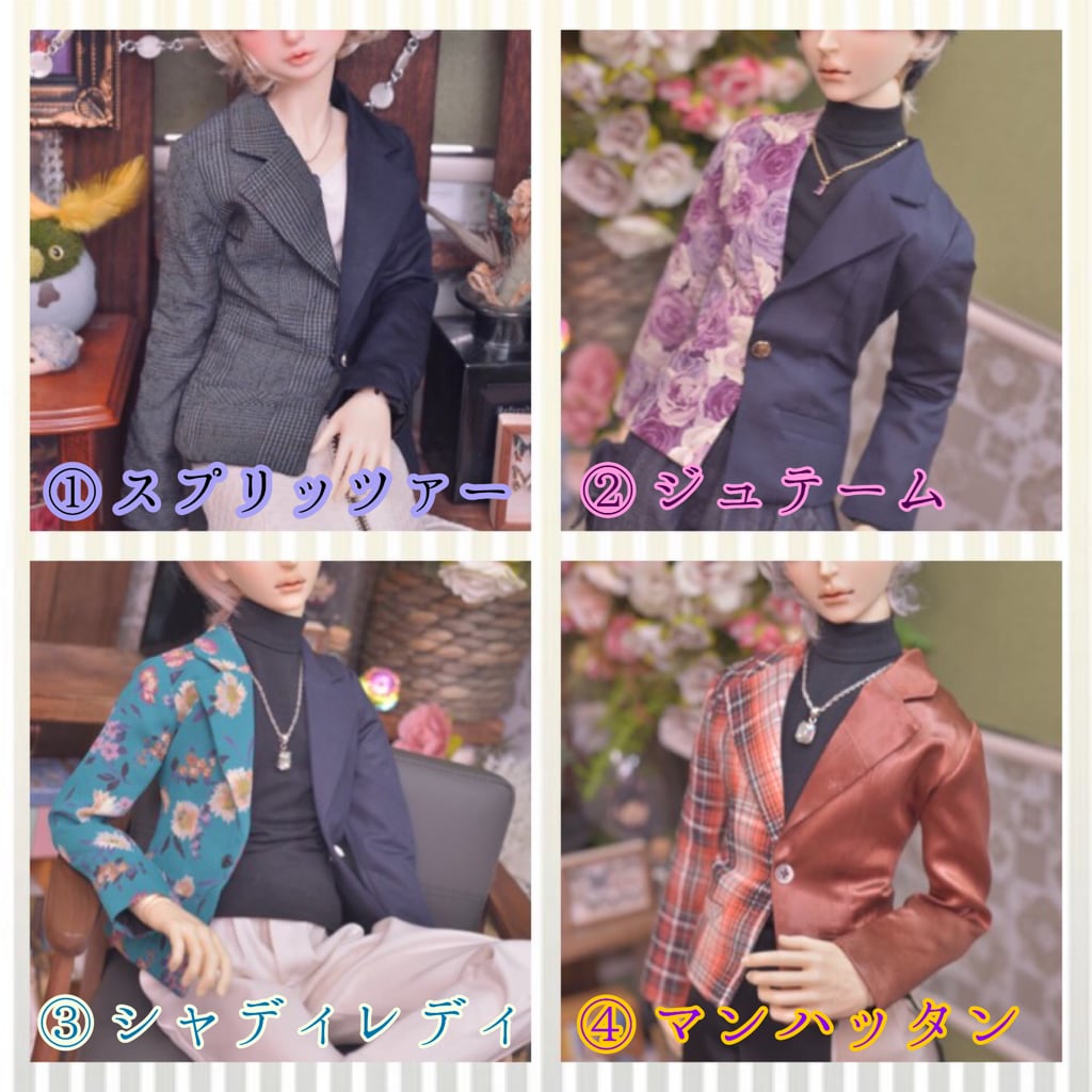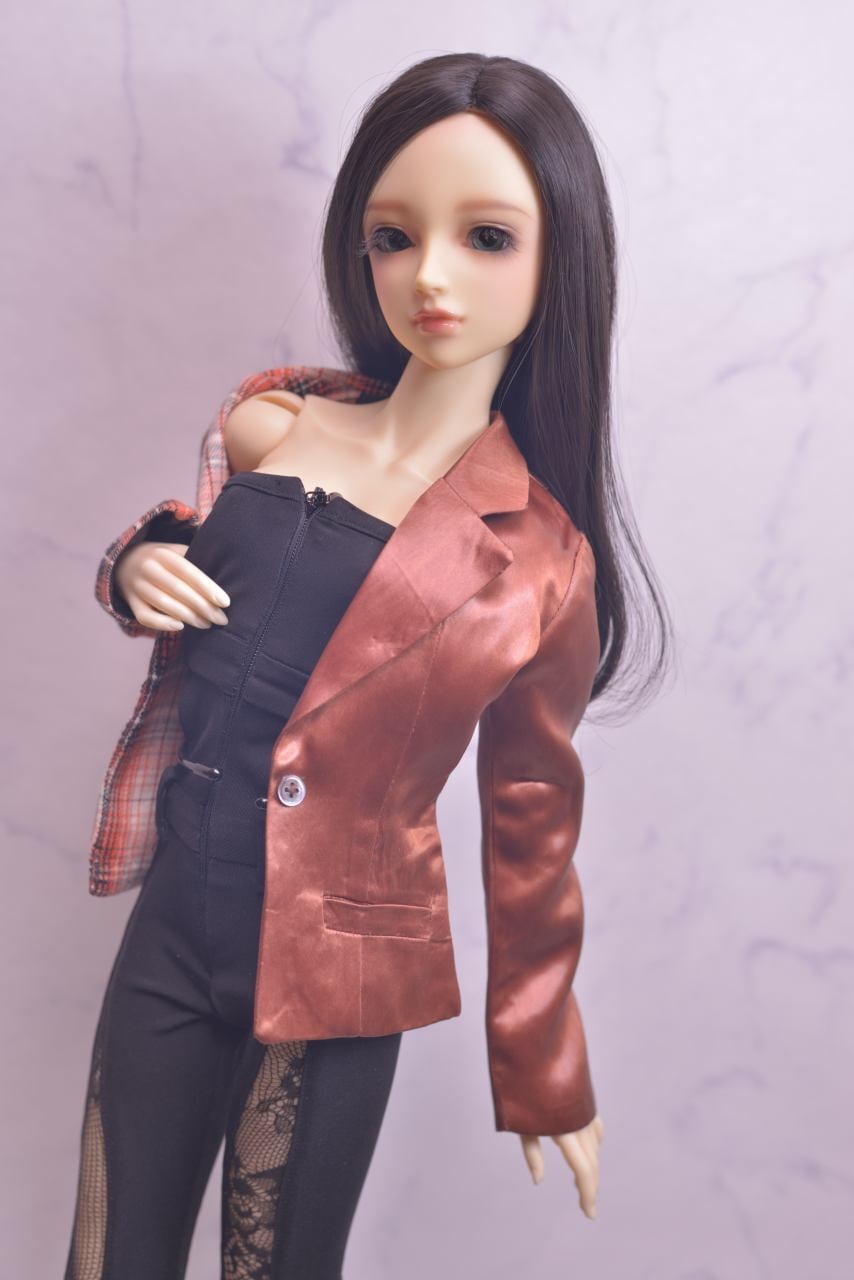 DDボディ等サイズの小さいドールさんでも、身体のラインに合わせた立体感を出したジャケットなので、ボディのシルエットを程よくひらいブカすぎない印象で着こなせるかなと思います。